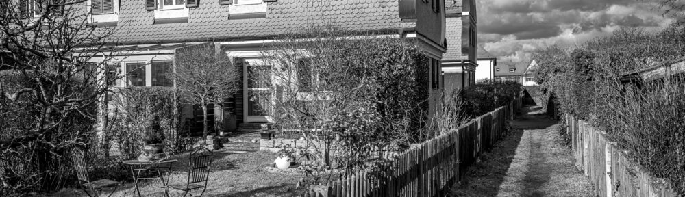 und das schöne Wetter genutzt, einen Rundgang durch die Gängla in der Gartenstadt zu machen. Diese kleinen Wege(=Gängla) verbinden die kleinen Reihenhäuser, die Anfang des 20. Jahrhunderts entstanden sind und ihre Vorgärten, die nicht so klein sind, unter einander. Die Wege sind ohne festes System angelegt und der Unkundige steht öfters mal in einer Sackgasse.